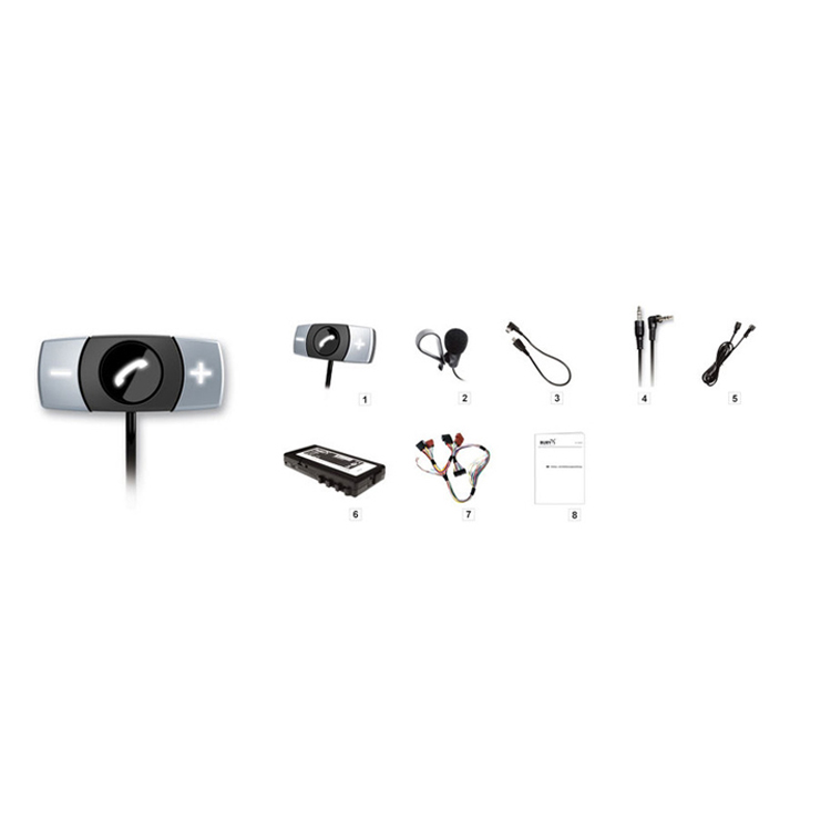 Bluetooth handsfree sada BURY CC9048. Zariadenie je určené na inštaláciu do vozidla odborným servisom, pripája sa k existujúcim reproduktorom audiosústavy vozidla. K zariadeniu je možné pripojiť a používať 2 telefóny v rovnakom čase (Multipoint).