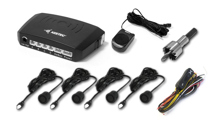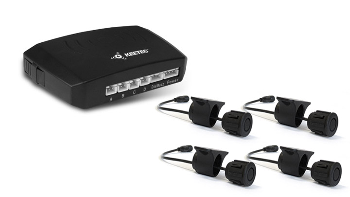 Parkovací asistent KEETEC určený pre inštaláciu do zadného nárazníka vozidla. Pri cúvaní s dosahom od 1,5 m do 0,3 m upozorní vodiča akusticky bzučiakom. Sada obsahuje 4 ks parkovacích snímačov Ø 19 mm s vymedzovacou podložkou ,